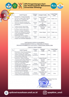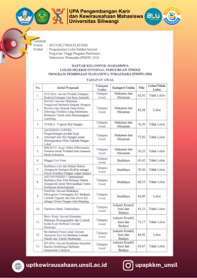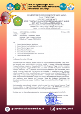 Berita Harian, PengumumanPengumuman Lolos Seleksi Internal Perguruan Tinggi P2MW 2026 Posted on 31 March 2026 by uptkwu 31 Mar uptkwu PENGUMUMAN PESERTA LOLOS LIBSOS 5.0 TAHUN 2026